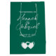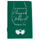 Emerald green gift bags can help enhance your special day. You can change the text on the front and back of the bag. Joint hearts design. Glossy finish. Use the template to create your own custom emerald green gift bag.