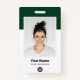 Easily personalise this Custom Employee Name Badge with Photo, Scan Qr Bar Code and business logo. A simple business design in elegant stylish dark green and white colours fully customisable in front and back sizes, sans-serif basic and modern fonts and a professional and clear look. Avaiable with lanyard, metal clip or with retractable. No minimum order.