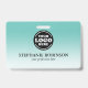 A modern teal business design name badge that hightlights your business logo and employees name. Option to include extra company info and a scan barcode on the back if required. This design would be perfect for any business or company and the background can be changed to any colour.