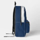 Easily personalise this professional backpack adding your company logo and a custom text. You can add business name, slogan, social media, website or any additional info, or delete it. A simple and modern design in navy blue and white featuring clear sans serif font, for a professional and edgy look, perfect as promotional gift for employee, customers, corporate celebrations, tradeshow. The backpack can be customised in any colour and any font. No minimum.