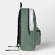 Easily personalise this professional backpack adding your company logo and a custom text. You can add business name, slogan, social media, website or any additional info, or delete it. A simple and modern design in sage green and white featuring clear sans serif font, for a professional and edgy look, perfect as promotional gift for employee, customers, corporate celebrations, tradeshow. The backpack can be customised in any colour and any font. No minimum.