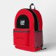 Easily personalise this professional backpack adding your company logo and a custom text. You can add business name, slogan, social media, website or any additional info, or delete it. A simple and modern design in eyecatching red and black featuring clear sans serif font, for a professional and edgy look, perfect as promotional gift for employee, customers, corporate celebrations, tradeshow. The backpack can be customised in any colour and any font. No minimum.