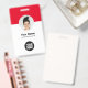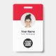 Easily personalise this Custom Business Minimalist Employee Name Badge with Photo, Scan Qr Code or Scan Bar Code and business logo. A simple business design with round photo, in red and white colours fully customisable in front and back sizes, sans-serif basic and modern fonts and a professional and clear look. Avaiable with lanyard, metal clip or with retractable. No minimum order.