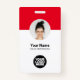 Easily personalise this Custom Business Minimalist Employee Name Badge with Photo, Scan Qr Code or Scan Bar Code and business logo. A simple business design with round photo, in red and white colours fully customisable in front and back sizes, sans-serif basic and modern fonts and a professional and clear look. Avaiable with lanyard, metal clip or with retractable. No minimum order.