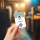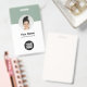 Easily personalise this Custom Business Minimalist Employee Name Badge with Photo, Scan Qr Code or Scan Bar Code and business logo. A simple business design with round photo, in sage green and white colours fully customisable in front and back sizes, sans-serif basic and modern fonts and a professional and clear look. Avaiable with lanyard, metal clip or with retractable. No minimum order.