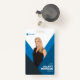 Personalize this modern employee name badge with your company logo, employee photo, name, ID number, or other custom text. This badge is available with a metal clip, lanyard, or a retractable reel. The design is easily customizable for your business. You can change the colors, fonts and optionally add content to the back like a barcode or return information. No minimum order quantity and no set up fee.