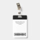 Easily personalise this Custom Administrative professional Name Badge without photo, featuring an easy copy and paste qr code template, Scan Bar Code and large business logo. A simple business design in black and white colours fully customisable in front and back sizes, sans-serif basic and modern fonts and a professional and clear look, perfect for small business employee, boss, guests. These business id badges supplies are avaiable with lanyard, metal clip or with retractable. No minimum order, but save money and enjoy Zazzle discounts by multiple orders!