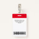 Easily personalise this Custom Administrative professional Name Badge without photo, featuring an easy copy and paste qr code template, Scan Bar Code and large business logo. A simple business design in red and white colours fully customisable in front and back sizes, sans-serif basic and modern fonts and a professional and clear look, perfect for small business employee, boss, guests. These business id badges supplies are avaiable with lanyard, metal clip or with retractable. No minimum order, but save money and enjoy Zazzle discounts by multiple orders!