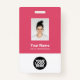 Easily personalise this vibrant fuchsia raspberry pink Custom Employee Name Badge with Photo, Scan Bar Code and business logo. A simple business design in girly cute fuchsia pink and white standard colours fully customisable in front and back sizes, sans-serif basic and modern fonts and a professional and clear look. Avaiable with lanyard, metal clip or with retractable. No minimum order.