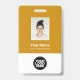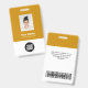 Easily personalise this Warm Mustard Yellow Custom Employee Name Badge with Photo, Scan Bar Code and business logo. A simple business design in trendy mustard yellow and white standard colours fully customisable in front and back sizes, sans-serif basic and modern fonts and a professional and clear look. Avaiable with lanyard, metal clip or with retractable. No minimum order.