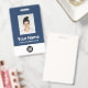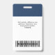 Easily personalize this Custom Employee Name Badge with Photo, Scan Bar Code and business logo. A simple business design in navy blue and white colors fully customizable in front and back sizes, sans-serif basic and modern fonts and a professional and clear look. Avaiable with lanyard, metal clip or with retractable. No minimum order.