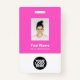 Easily personalise this neon fuchsia raspberry pink Custom Employee Name Badge with Photo, Scan Bar Code and business logo. A simple business design in girly cute fuchsia pink and white standard colours fully customisable in front and back sizes, sans-serif basic and modern fonts and a professional and clear look. Avaiable with lanyard, metal clip or with retractable. No minimum order.