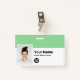 Easily personalise this Custom Employee Name Badge with Photo, Scan Bar Code and business logo, with metal clip included. A simple business design left-aligned in green and white colours fully customisable in front and back sizes, sans-serif basic and modern fonts and a professional and clear look. Avaiable with or without lanyard, metal clip or with retractable. No minimum order.