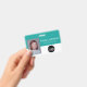 A basic business design that highlights your office logos and employee name. You can add a scan bar code on the front and back.