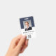 Easily personalize this custom blue employee name and photo badge with your own company logo and qr code or bar code. Available with different background colors and attachments. No minimum order quantity.