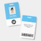 Easily personalise this Light Baby Blue Custom Employee Name Badge with Photo, Scan Bar Code and business logo. A simple business design in fresh teal turquoise and white standard colours fully customisable in front and back sizes, sans-serif basic and modern fonts and a professional and clear look. Avaiable with lanyard, metal clip or with retractable. No minimum order.