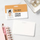 Easily personalise this Custom Horizontal Employee ID company Name Badge with Photo, Scan Bar Code or Qr code and business logo. A simple and clean business design in modern tangerine orange and white colours fully customisable in front and back sizes, sans-serif basic and modern fonts and a professional and clear look. These standard security id name tags badges are avaiable with lanyard, metal clip or with retractable. You can personalise your id badge cards choosing any background colour and any font style with Graphic Design editor by clicking on customise further. No minimum order.