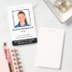 Keep your hospital or medical practice safe with custom photo ID badges featuring your employee's photo, name, job title, and ID number, as well as the business name. You can also include a department if you like. Perfect for a nurse or other staff. On the back you can add more information, such as where to return the badge if it gets lost. Customize it with a photo and custom text in the sidebar. The square photo has a thin black border on a white background. The text is black except for the hospital name at the bottom which is white on a black band.