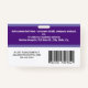 Durable, high-quality, double-sided custom company/hospital photo Identification badge. On the front, easily add your company logo (or delete), employee photo, name, title and id information. On the back add additional lines of custom text, i.e. business address, email, phone number, building location, etc. Also add a bar code, QR code or company logo - or delete. Current badge offers a purple color scheme which can easily be changed to match your company colors.