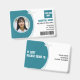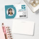 This horizontal medical photo ID badge features a modern white and light blue design.