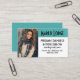 Customise your employee's business card to match their Photo ID badges. All details can be modified or removed. Photo, name, company, department/division/title and email. Crisp black text on white background with teal border at the top. Every detail can be customised, including colours and fonts. Spot for additional information on reverse of card, if needed. If not, can be deleted.