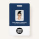 Easily personalise this Custom Employee Name Badge with Photo, Scan Qr Code (always readable, it works!) and business logo. A simple business design in navy blue and white colours fully customisable in front and back sizes, sans-serif basic and modern fonts and a professional and clear look. Avaiable with lanyard, metal clip or with retractable. No minimum order.