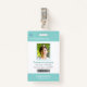 Your Health Care Company personalised Logo Photo Clip Name Badge for doctor, surgeon, nurse, dentist, employee, volunteer and any medical profession with caduceus medicine symbol on the back side. With custom Photo, Logo, Bar Code, Name, Department and additional informations. A fresh, sophisticated and clear design in bright spindrift green, light grey and white, with sans-serif fonts. Use this modern name tag badges for all of your staff for keeping any important informations with them in a simple way. Photo by Humberto Chavez.
