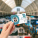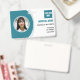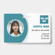 This horizontal medical photo ID badge features a modern white and light blue design.