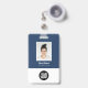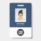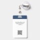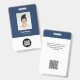 Easily personalise this Custom Employee Name Badge with Photo, Qr Code and business logo. A simple business design in navy blue and white colours fully customisable in front and back sizes, sans-serif basic and modern fonts and a professional and clear look. Avaiable with lanyard, metal clip or with retractable. No minimum order.