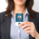 Minimalist photo security id badge in navy blue and white colours fully customisable with your company details as well as personnel information on both the front and reverse side.