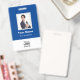 Easily personalise this Custom Employee Name Badge with Photo, Scan QR Code and business logo. A simple business design in navy blue and white colours fully customisable in front and back sizes, sans-serif basic and modern fonts and a professional and clear look. Avaiable with lanyard, metal clip or with retractable. No minimum order.