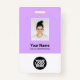 Easily personalise this Custom Employee Name Badge with Photo, Scan Qr Code (always readable, it works!) and business logo. A simple business design in modern liliac pastel purple and white colours fully customisable in front and back sizes, sans-serif basic and modern fonts and a professional and clear look. Avaiable with lanyard, metal clip or with retractable. No minimum order.