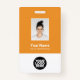 Easily personalise this Custom Employee Name Badge with Photo, Scan Qr Code (always readable, it works!) and business logo. A simple business design in modern tangerine orange and white colours fully customisable in front and back sizes, sans-serif basic and modern fonts and a professional and clear look. Avaiable with lanyard, metal clip or with retractable. No minimum order.