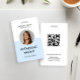 Modern round circular personalised employee photo ID name badge with a custom QR code. Simple, sleek light blue Identification name and title photograph badges.