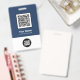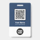Easily personalise this Custom Employee Name Badge with or without Photo, Qr Code, Scan Bar Code and business logo. A simple business design in navy blue and white colours fully customisable in front and back sizes, sans-serif basic and modern fonts and a professional and clear look. Avaiable with lanyard, metal clip or with retractable. No minimum order.