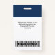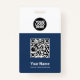 Easily personalise this Custom Employee Name Badge with Qr Code, Scan Bar Code and business logo. A simple business design in navy blue and white colours fully customisable in front and back sizes, sans-serif basic and modern fonts and a professional and clear look. Avaiable with lanyard, metal clip or with retractable. No minimum order.