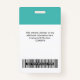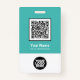 Easily personalise this Custom Employee Name Badge with or without Photo, Qr Code, Scan Bar Code and business logo. A simple business design in light blue turquoise and white colours fully customisable in front and back sizes, sans-serif basic and modern fonts and a professional and clear look. Avaiable with lanyard, metal clip or with retractable. No minimum order.