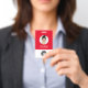Easily personalise this Custom Employee Name Badge with Round Profile id Photo, Scan Bar Code and business logo. A simple business design in red and white colours fully customisable in front and back sizes, sans-serif basic and modern fonts and a professional and clear look. Avaiable with lanyard, metal clip or with retractable. No minimum order.