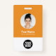 Easily personalise this Custom Employee Name Badge with Round Profile id Photo, Scan Bar Code and business logo. A simple business design in tangerine orange and white colours fully customisable in front and back sizes, sans-serif basic and modern fonts and a professional and clear look. Avaiable with lanyard, metal clip or with retractable. No minimum order.