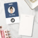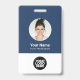 Easily personalise this Custom Employee Name Badge with Round Profile id Photo, Scan Bar Code and business logo. A simple business design in navy blue and white colours fully customisable in front and back sizes, sans-serif basic and modern fonts and a professional and clear look. Avaiable with lanyard, metal clip or with retractable. No minimum order.
