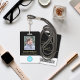 Create your own custom, personalised, durable PVC plastic, won't fade or tear, cool modern trendy black and white, name photo ID badge, featuring faux gold font, with choice of attachments - lanyard, metal clip, retractable, or none. To personalise, enter the name of the employee / staff / executive, their designation, and any additional information like employee ID, issue & expiry date of the badge, if lost return to & the address, etc. Next add the photo of the employee / staff / executive, add the business / company logo, and add the barcode. While you type/design, you'll be able to see a preview of your badge, throughout. Great for small business, corporate, school, restaurant, office, concert, retail, hospital, clinic, and for employee, staff, doctor, teacher, student.