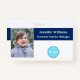 Create your own custom, personalised, durable PVC plastic, won't fade or tear, cool modern trendy dark blue and white, name photo ID badge, with choice of attachments - lanyard, metal clip, retractable, or none. To personalise, enter the name of the employee / staff / executive, their designation, and any additional information like employee ID, issue & expiry date of the badge, if lost return to & the address, etc. Next add the photo of the employee / staff / executive, add the business / company logo, and add the barcode. While you type/design, you'll be able to see a preview of your badge, throughout. Great for small business, corporate, school, restaurant, office, concert, retail, hospital, clinic, and for employee, staff, doctor, teacher, student.