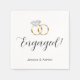These napkins say Engaged! along with a pair of white and gold diamond wedding rings with and the bride and grooms names on the bottom. Perfect custom napkins for an engagement party.