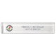An elegant executive desk name and business logo plaque you can easily customise. The fields includes name placeholder, job title or position in the company, and the brand logo.