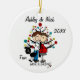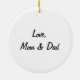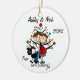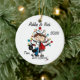 A cute, fun ceramic ornament featuring a stick figure expectant couple, a black dog, holiday tree, and text that reads "We're Expecting!" with an area you can add your names or surname, the dog's name, and the add the current year! You can also customize the back of this cute stick figure holiday ornament!