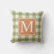 Farmhouse country style autumn green and white gingham plaid pattern, with the option to customise or personalise with a family name monogram of your choice. Fun pretty fall coloured outdoor cushion to adorn your patio or cabin porch with and get in the mood for fall season, the Thanksgiving holiday and Halloween.