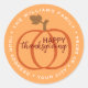 Artistic Orange pumpkin on a classic light fall orange background and cute Happy Thanksgiving quote text. With room to customise or personalise with family name and return address.
