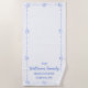 Bring a touch of seaside charm to your summer with this personalised beach house towel. Designed in a classic nautical blue and white palette, this towel features a charming dotted shell border and customisable text for your family name and coastal location—perfect for any beloved beach town. Ideal for vacation homes, coastal rentals, or summer reunions, this custom towel adds a refined, personal touch to your sunny escapes. A must-have for guests, gifting, or simply lounging in style.
