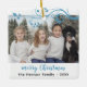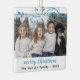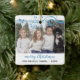 Custom Family Blue Foliage Merry Christmas Photo Ceramic Ornament