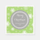 Customisable napkins for the holiday season in charcoal dark grey, light lime green and white festive snowflakes pattern.